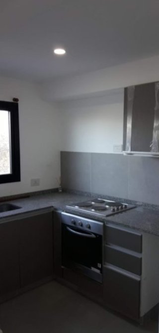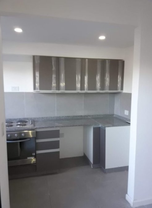 Cocina integrafa de 1,50 x 3,20 con murbles bajo y sobre mesada.