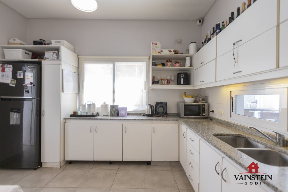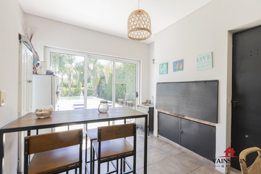 • Amplia cocina comedor, equipada con alacenas, bajo mesada y moderna isla con anafe, con acceso directo al jardín.